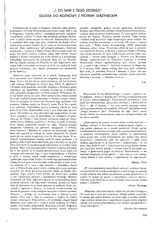I co nam z tego zostało. Glossa do rozmowy z Piotrem Skrzyneckim / Polska Sztuka Ludowa - Konteksty 1988 t.42 z.1-2