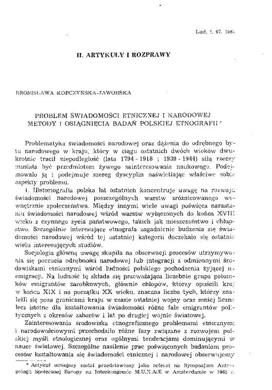 Problem świadomości etnicznej i narodowej / LUD 1983 t.67
