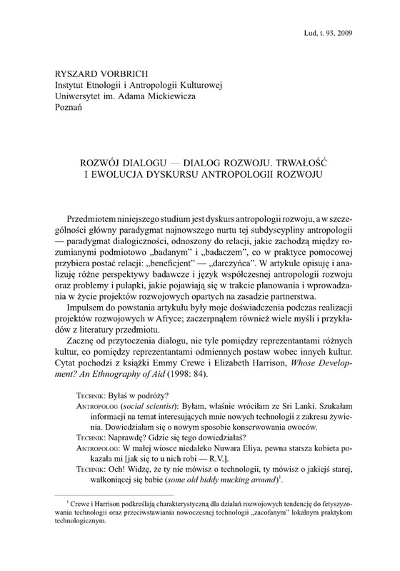 - Rozwój dialogu - dialog rozwoju / LUD 2009 t.93