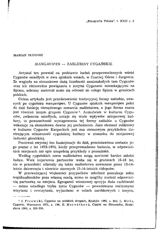 - Mangavipen - zaślubiny cygańskie / ETNOGRAFIA POLSKA 1978 t.22 z.2