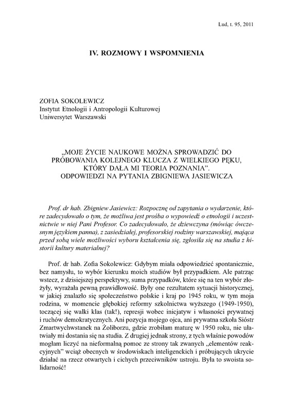 Moje życie naukowe można sprowadzić do próbowania kolejnego klucza z wielkiego pęku, który dała mi teoria poznania/ LUD 2011 t.95