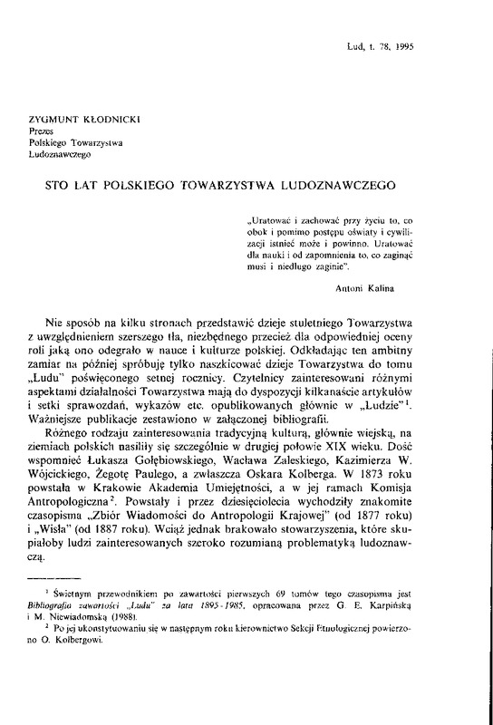 - Sto lat Polskiego Towarzystwa Ludoznawczego / LUD 1995 t.78
