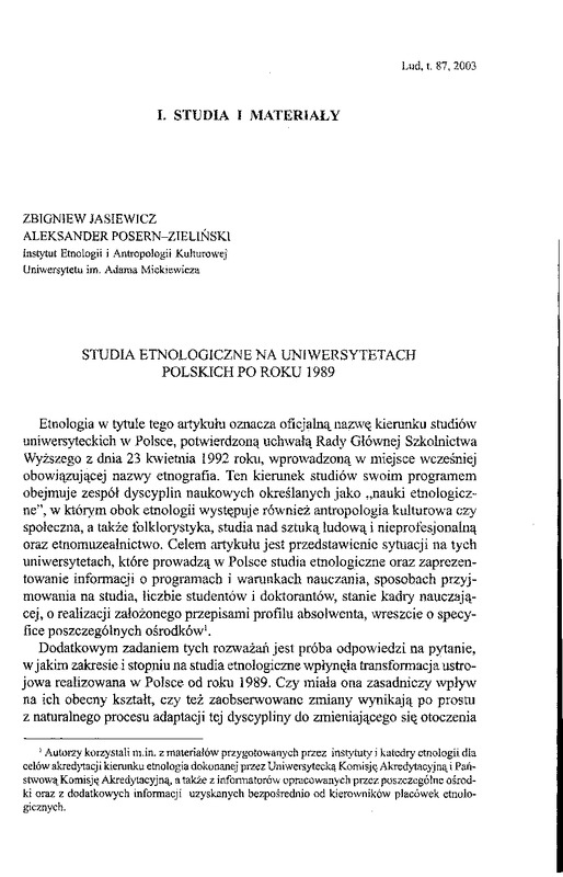 - Studia etnologiczne na uniwersytetach polskiech po roku 1989 / LUD 2003 t.87