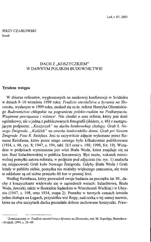 - Dach z "koszyczkiem" w dawnym polskim budownictwie / LUD 2003 t.87