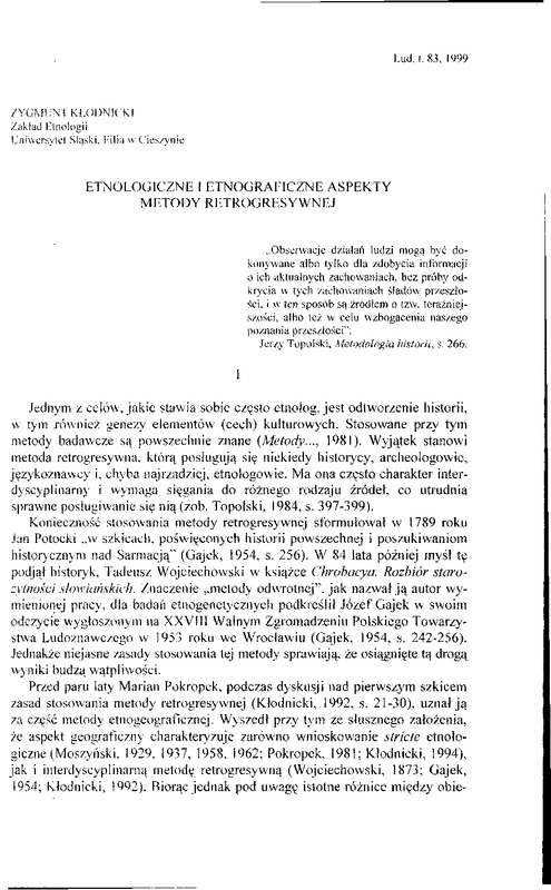 - Etnologiczne i etnograficzne aspekty metody retrogresywnej / LUD 1999 t.83