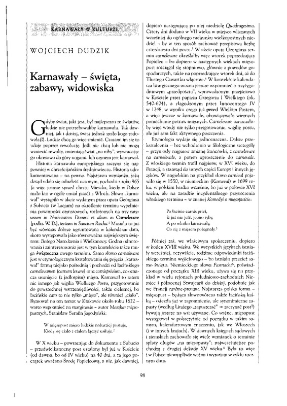 - Karnawały - święta, zabawy, widowiska / Polska Sztuka Ludowa - Konteksty 2002 t.56 z.3-4