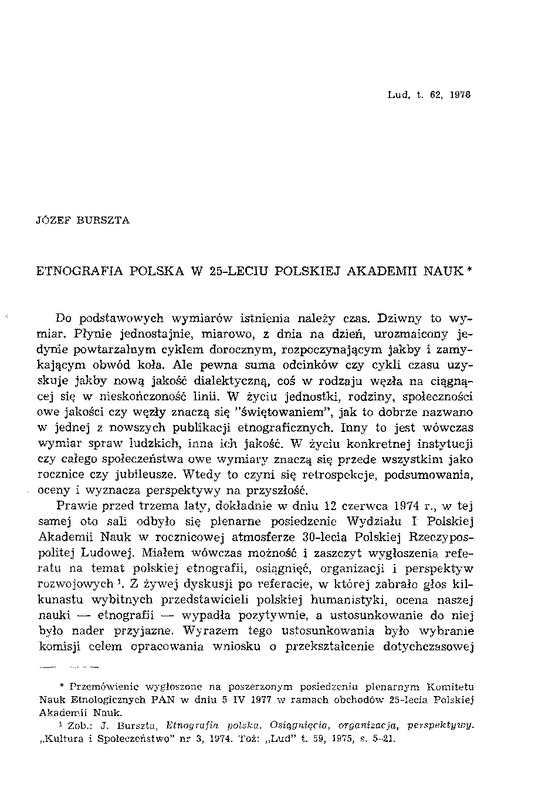 Etnografia polska w 25-leciu polskiej Akademii Nauk / LUD 1978 t.62