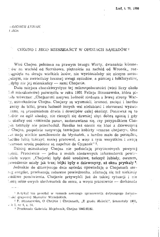 - Chojno i jego mieszkańcy w opinii sąsiadów / LUD 1986 t.70