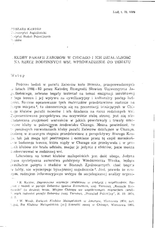 Kluby parafii Zaborów w Chicago i ich działalność na rzecz rodzinnych wsi / LUD 1986 t.70