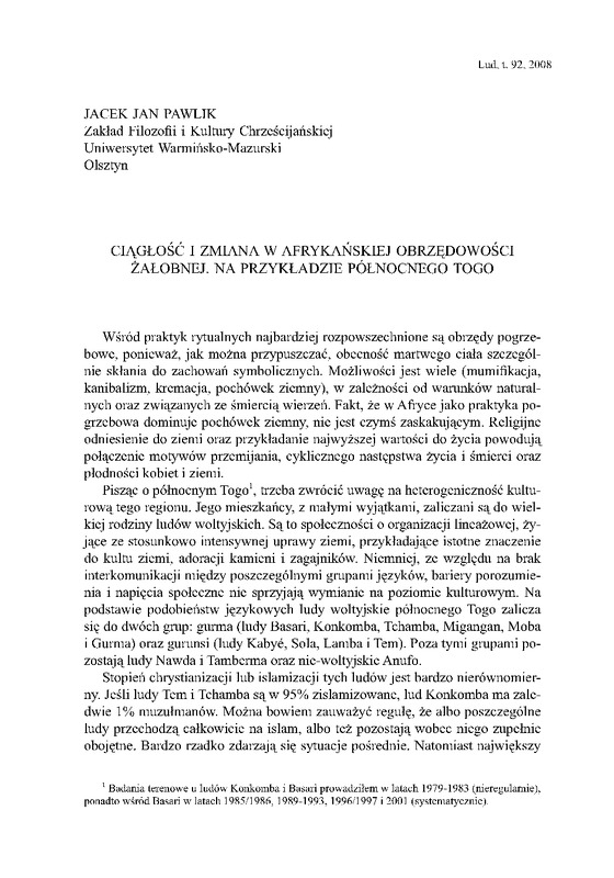Ciągłość i zmiana w afrykańskiej obrzędowości żałobnej/ LUD 2008 t.92