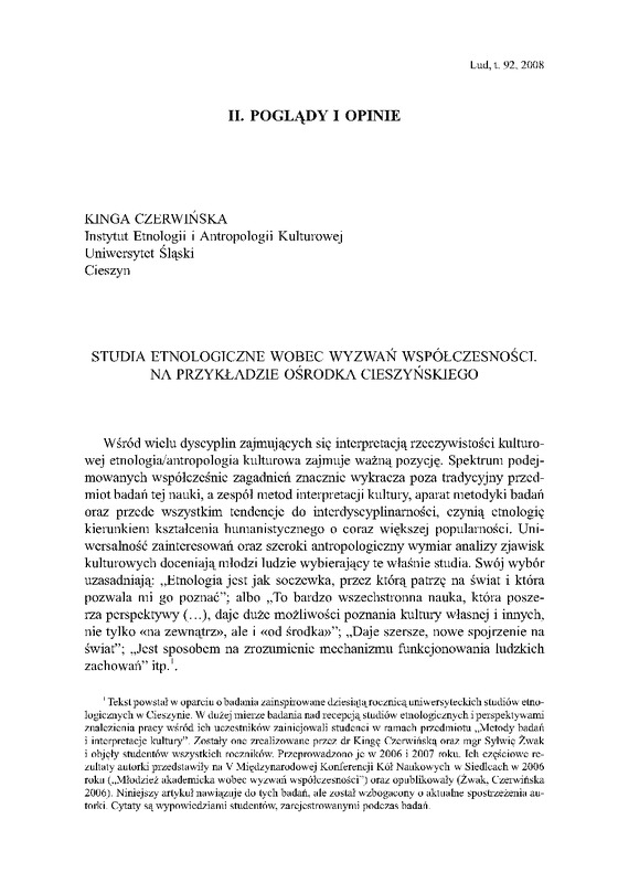 - Studia etnologiczne wobec wyzwań współczesności / LUD 2008 t.92