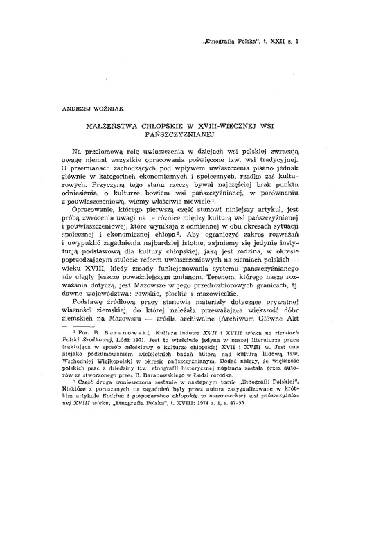 Małżeństwo chłopskie w XVIII-wiecznej wsi pańszczyźnianej / ETNOGRAFIA POLSKA 1978 t.22 z.1