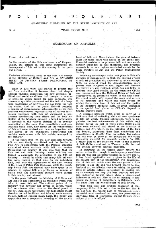 Summary of articles / Polska Sztuka Ludowa - Konteksty 1959 t.13 z.4
