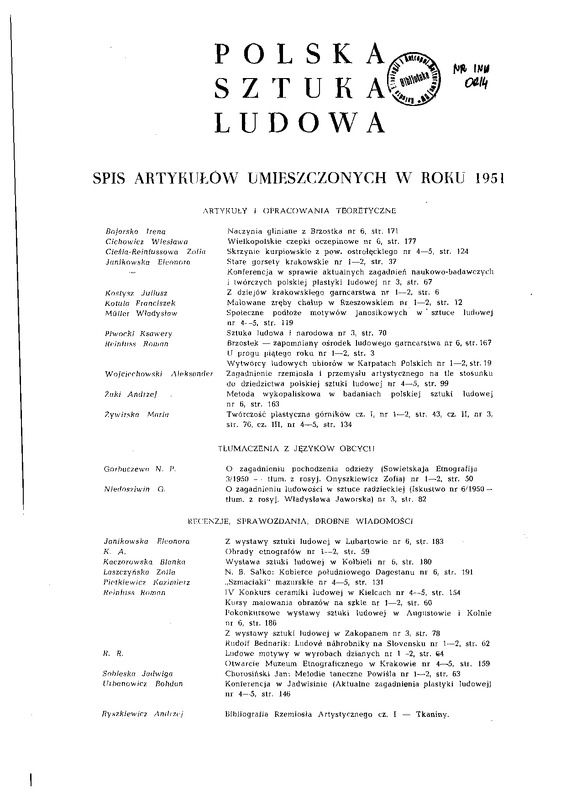 - Polska Sztuka Ludowa 1952 t.6 z.1:s.2-6