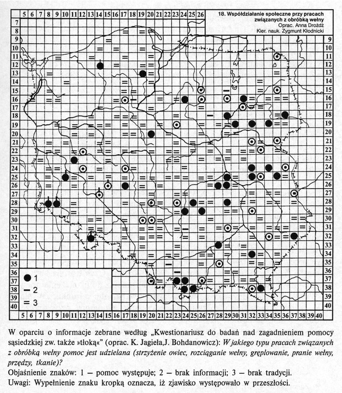 Współdziałanie społeczne przy pracach związanych z obróbką wełny/ Komentarze do Polskiego Atlasu Etnograficznego (mapy)