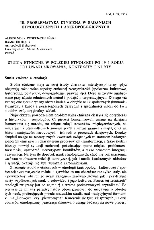 - Studia etniczne w polskiej etnologii po 1945 roku / LUD 1995 t.78