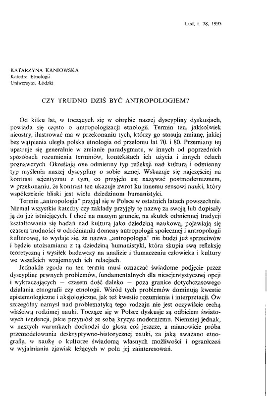 - Czy trudno dziś być antropologiem? / LUD 1995 t.78