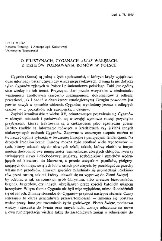 O Filistynach, Cyganach alias wałęsach / LUD 1995 t.78