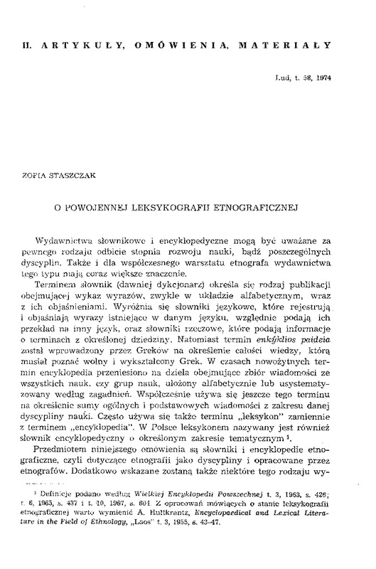 - O powojennej leksykografii etnograficznej / LUD 1974 t.58