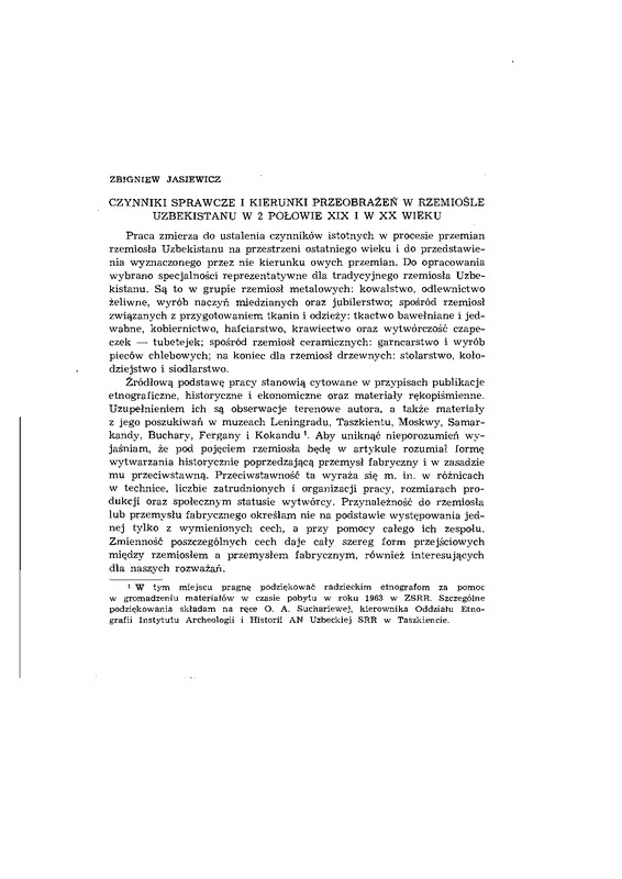 Czynniki sprawcze i kierunki przeobrażeń w rzemiośle Uzbekistanu w 2. połowie XIX i w XX w. / ETNOGRAFIA POLSKA 1968 t.12