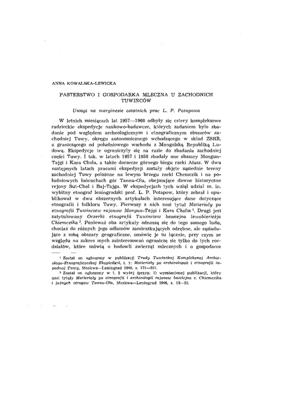 Pasterstwo i gospodarka mleczna u zachodnich Tuwińców / ETNOGRAFIA POLSKA 1968 t.12