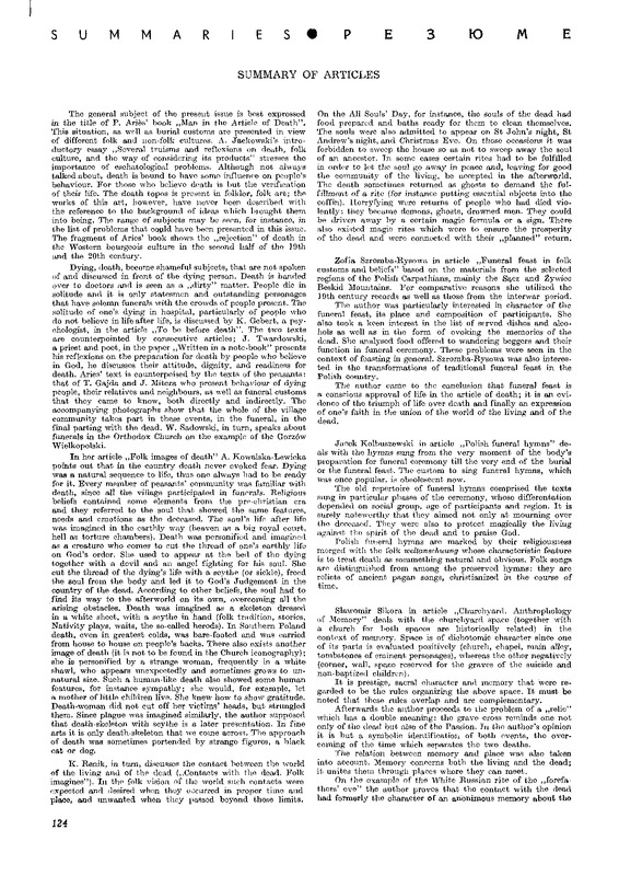 Summary of articles / Polska Sztuka Ludowa - Konteksty 1986 t.40 z.1-2