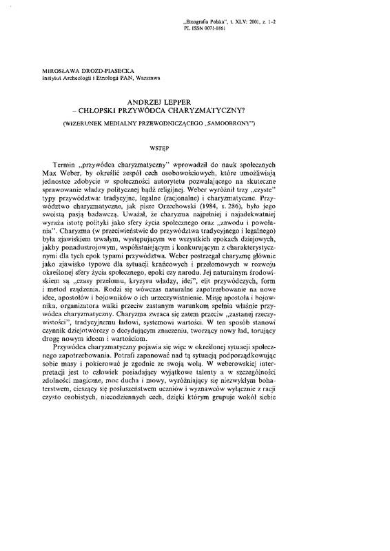 Andrzej Lepper - chłopski przywódca charyzmatyczny? / ETNOGRAFIA POLSKA 2001 t.45