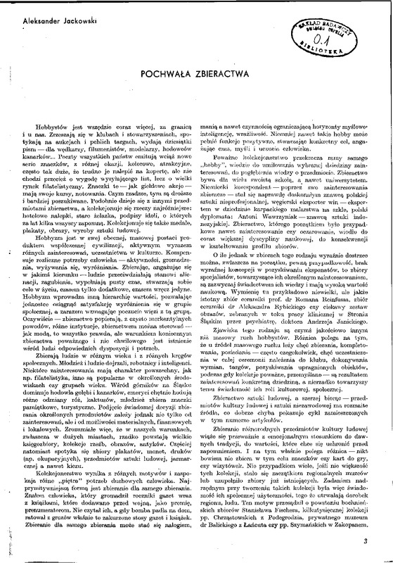- Pochwała zbieractwa / Polska Sztuka Ludowa - Konteksty 1975 t.29 z.1-2