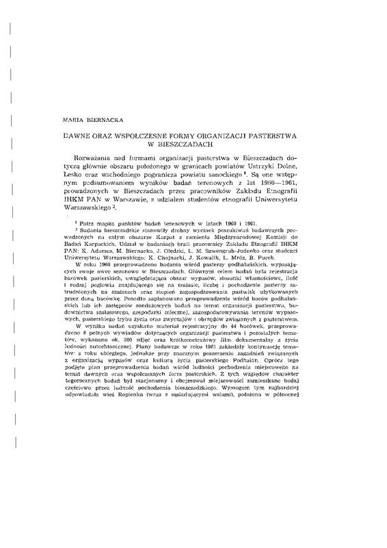 Dawne oraz współczesne formy organizacji pasterstwa w Bieszczadach / ETNOGRAFIA POLSKA 1962 t.6