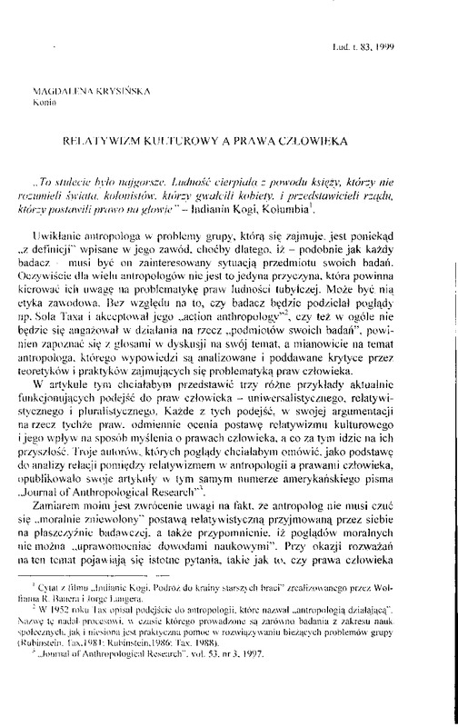 - Relatywizm kulturowy a prawa człowieka / LUD 1999 t.83