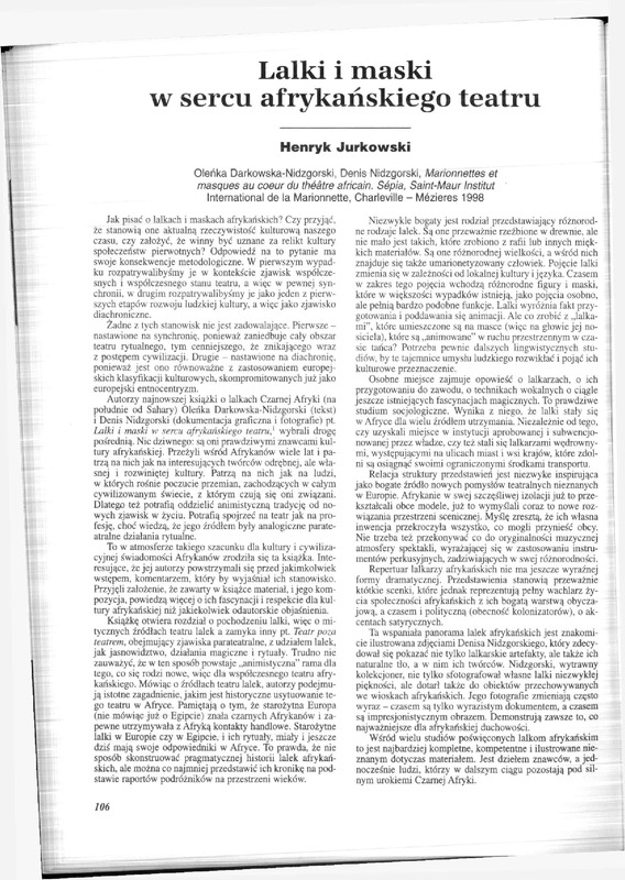 - Lalki i maskiw sercu afrykańskiego teatru / Polska Sztuka Ludowa - Konteksty 1999 t.53 z.4