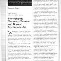 Photographic Testimony Between and Beyond Science and Art=Świadectwo fotografii pomiędzy i poza nauką i sztuką / Polska Sztuka Ludowa - Konteksty 2000 t.54 z.1-4