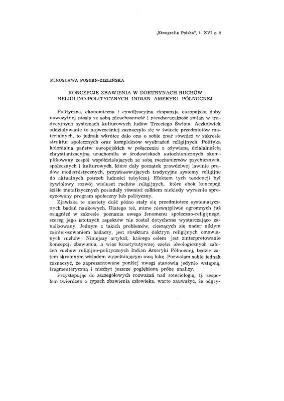 Koncepcja zbawienia w doktrynach ruchów religijno-politycznych Indian Ameryki Północnej / ETNOGRAFIA POLSKA 1972 t.16 z.2