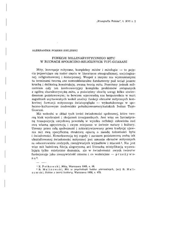 Funkcje millenarystycznego mitu w ruchach społeczno-religijnych Tupi-Guarani / ETNOGRAFIA POLSKA 1972 t.16 z.2