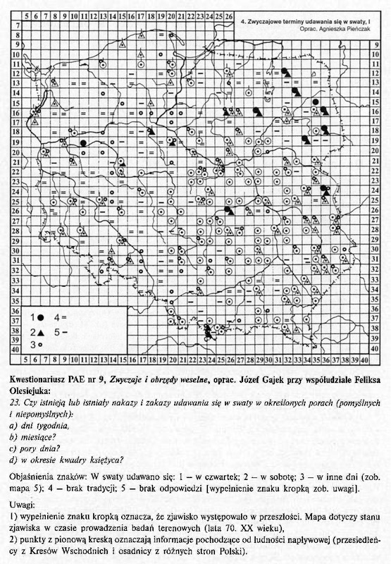 Zwyczajowe terminy udawania się w swaty, I/ Komentarze do Polskiego Atlasu Etnograficznego (mapy)
