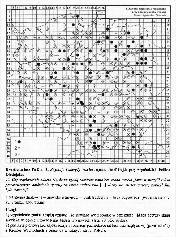 Zwyczaj kojarzenia małżeństw przy pomocy osoby trzeciej/ Komentarze do Polskiego Atlasu Etnograficznego (mapy)