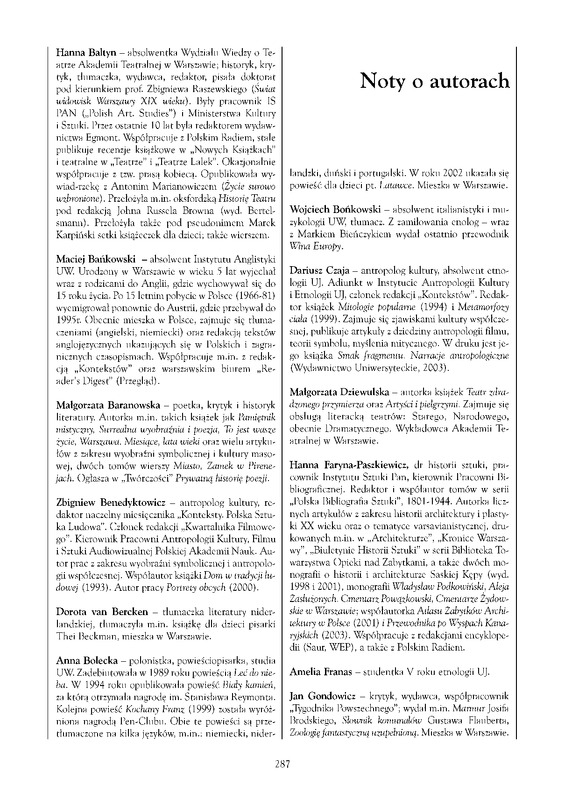 - Noty o autorach/ Polska Sztuka Ludowa - Konteksty 2003 t.57 z.1-2