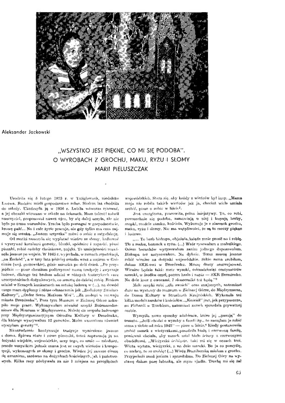 Wszystko jest piękne, co mi się podoba. O wyrobach z grochu, maku, ryżu i słomy Marii Pieluszczak / Polska Sztuka Ludowa - Konteksty 1985 t.39 z.1-2