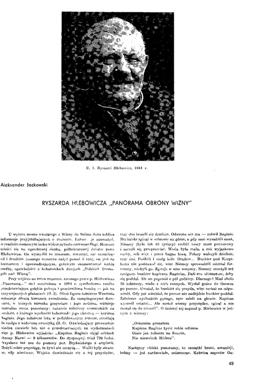 - Ryszarda Hlebowicza "Panorama obrony Wizny" / Polska Sztuka Ludowa - Konteksty 1985 t.39 z.1-2