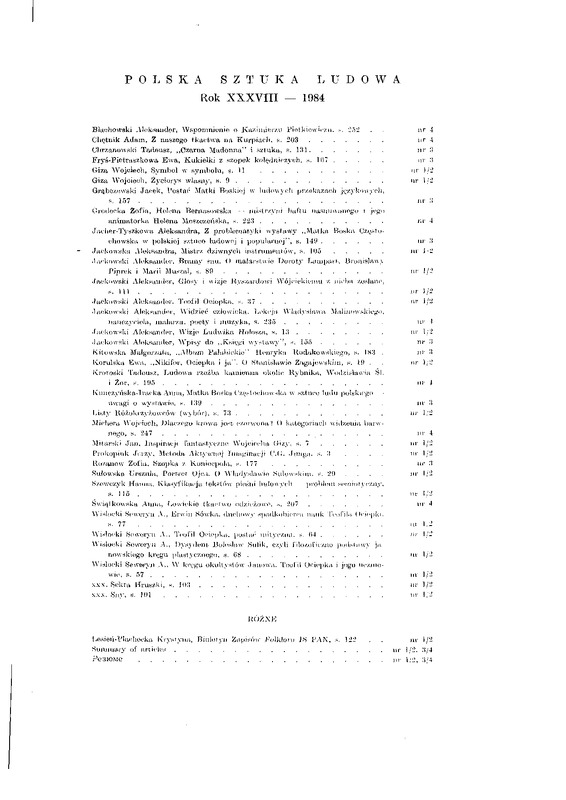 - Spis treści / Polska Sztuka Ludowa - Konteksty 1985 t.39 z.1-2
