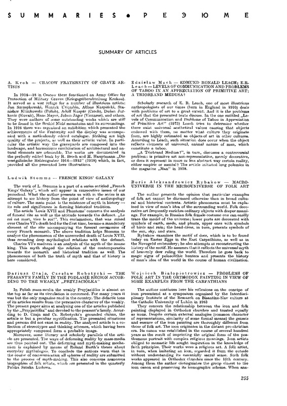 Summary of articles / Polska Sztuka Ludowa - Konteksty 1986 t.40 z.3-4