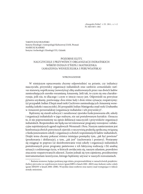 - Pozorne elity / ETNOGRAFIA POLSKA 2011 t.55