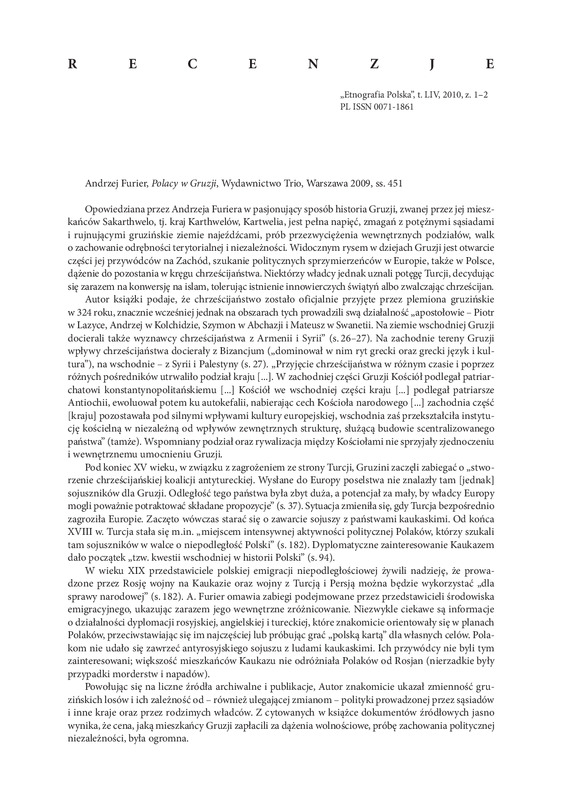 - Artykuły recenzyjne, recenzje / ETNOGRAFIA POLSKA 2010 t.54 z.1-2