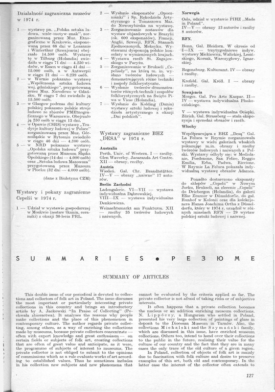 - Summary of articles/ Polska Sztuka Ludowa - Konteksty 1975 t.29 z.1-2