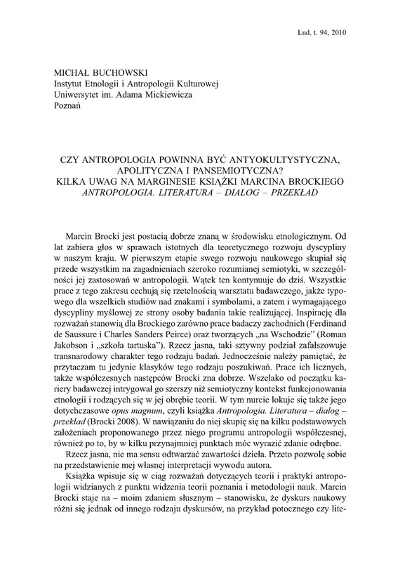 Czy antropologia powinna być antyokulystyczna, apolityczna i pansemiotyczna? / LUD 2010 t.94