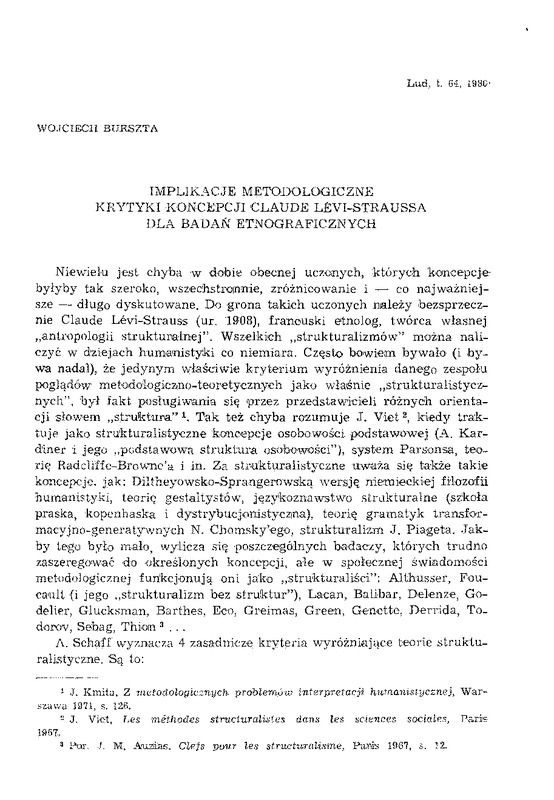 Implikacje metodologiczne krytyki koncepcji Claude Lévi-Straussa dla badań etnograficznych / LUD 1980 t.64