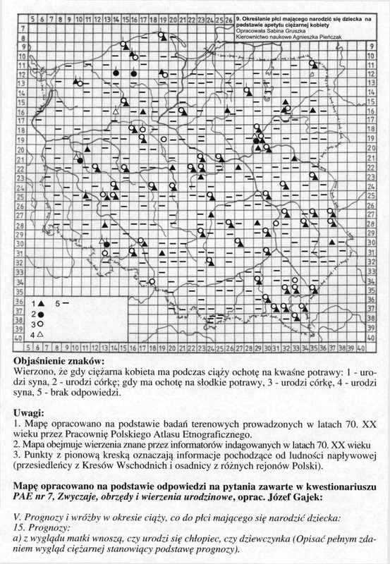 Określanie płci mającego narodzić się dziecka na podstawie apetytu ciężarnej kobiety/ Komentarze do Polskiego Atlasu Etnograficznego (mapy)