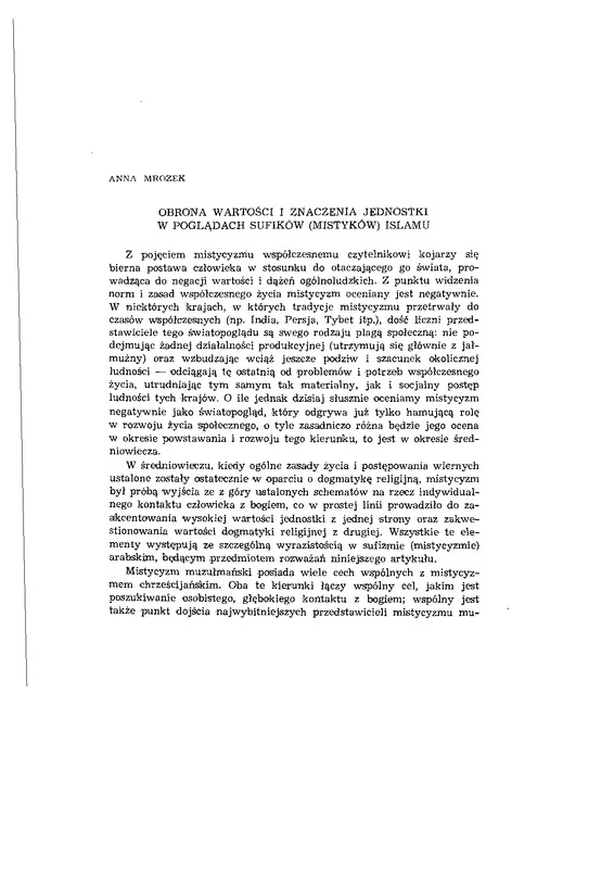 Obrona wartości i znaczenia jednostki w poglądach sufików (mistyków) islamu / ETNOGRAFIA POLSKA 1967 t.11