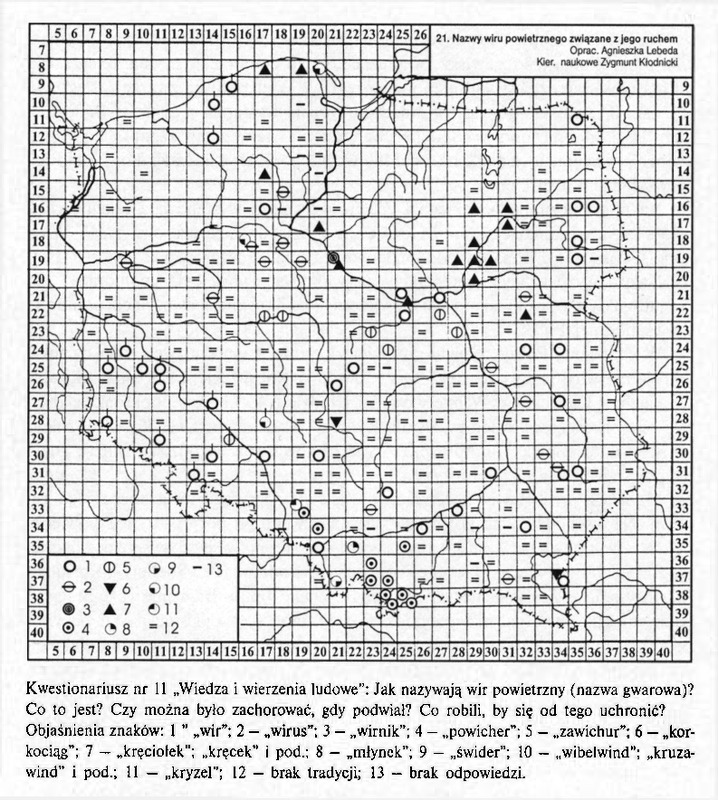 Nazwy wiru powietrznego związane z jego ruchem/ Komentarze do Polskiego Atlasu Etnograficznego (mapy)