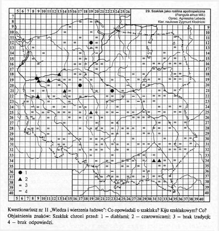 Szakłak jako roślina apotropeiczna (Frangula alnus Mill.)/ Komentarze do Polskiego Atlasu Etnograficznego (mapy)